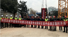 10 月23日上午10:58分,由中建钢构有限公司华中大区建设的江西省南昌市中金国际交易中心钢结构首节柱顺利开吊,这标志着该项目钢结构进入全面施工阶段,江西中金黄金珠宝置业有限公司、中国瑞林工程技术有限公司、江西恒信集团、江西建工集团有限公司及中建